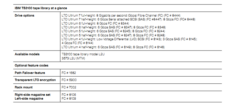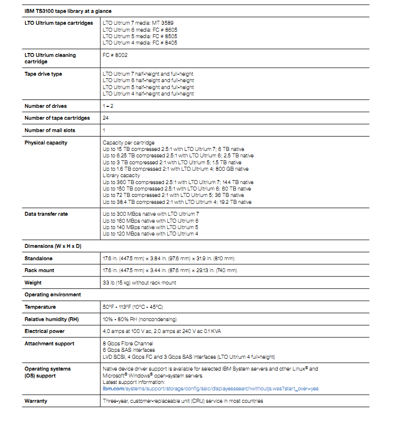 IBM TS3100操作系统 IBM AIX、IBM OS/400、IBM i5/OS、Windows 2000、Windows Server 2003、Sun Solaris、HP-UX、Red Hat 和 United Linux 提供本机设备驱动程序支持。